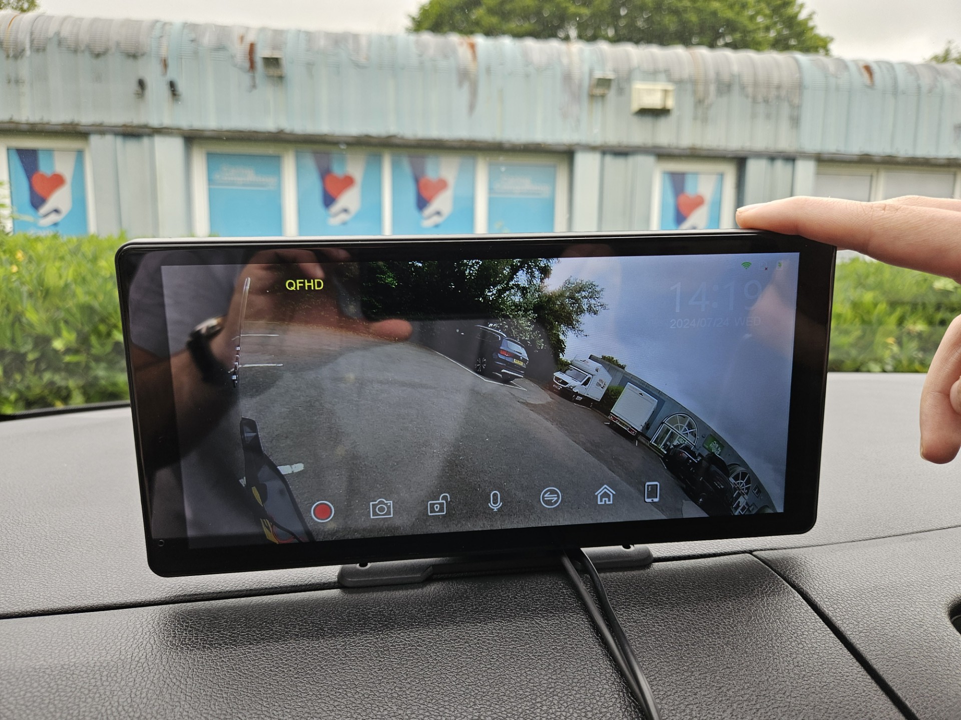10.6” Andriod auto/Apple car play dash mounted touch screen mirror monitor. Particularly suitable for lorries. Great for Spotify/Waze maps etc. wireless connection for Andriod/Apple & Bluetooth. Four camera inputs with built in recording for multiple camera views with touch screen to select each camera, multiple triggers. Can set for Blind Spot AI warning.