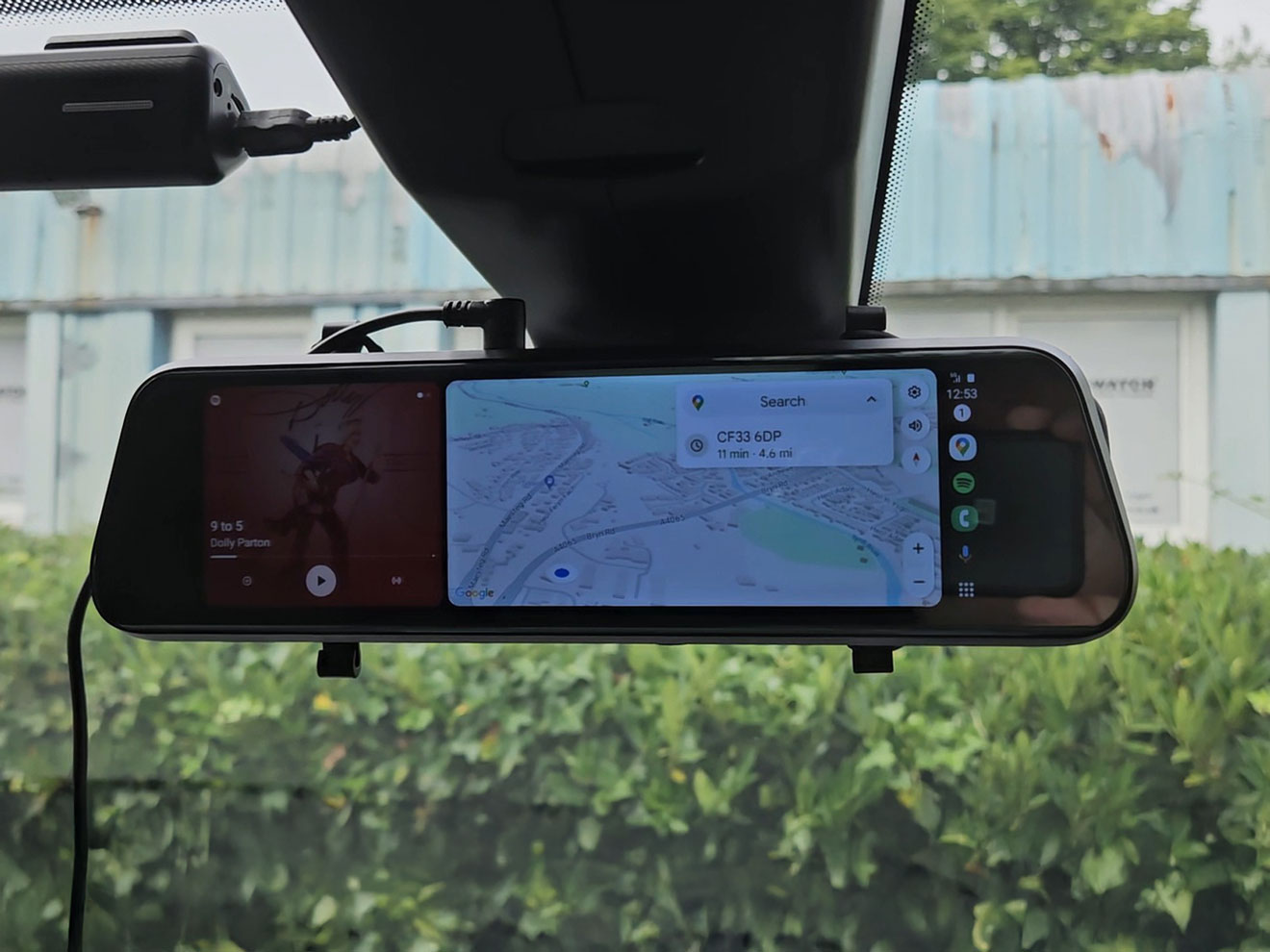9.6” Andriod auto/Apple car play windscreen mount or clip on touch screen mirror monitor. Particularly suitable for Vans. Great for Spotify/Waze maps etc. wireless connection for Andriod/Apple & Bluetooth. Unit also has a built in full HD forward dash cam to record any incidents.
